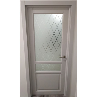 Дверное полотно "Елена" со стеклом Сатинат с алмазной гравировкой, цвет серый РАЛ 7047, рамочно-филенчатой конструкции из сосны, со стеклом. Комбинированный массив сосны или березы. Цена указана за полотно стандартных размеров. Изготовление возможно в 8 цветах тонировки, 5 цветах покраски, а также покраска в другие по каталогу RAL, н..