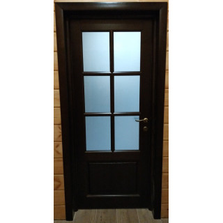 Дверное полотно Классика1 ДО решетка, цвет венге коричневый, рамочно-филенчатой конструкции из сосны, со стеклом Сатинат белое. Комбинированный массив сосны или березы. Базовый вариант - филенка из массива + тонировка или окраска. Цена указана за полотно стандартных размеров. Изготовление возможно в 8 цветах тонировки, 5 цветах покраск..